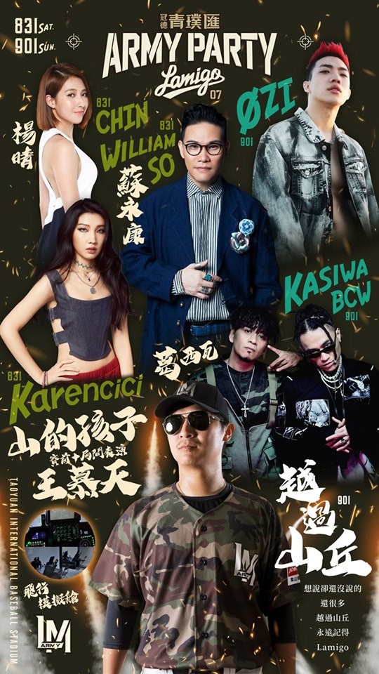 2019中職Lamigo阿迷趴(ARMY PARTY)黑貓中隊主題日,將在 8/31 ~ 9/1 桃園棒球場盛大舉辦,搭配黑貓中隊所推出主題球衣「魅影」與主題活動,讓整個阿迷趴充滿濃濃軍事風,Lamigo桃猿在前一陣子成功舉辦,榮耀國軍英雄的「鋼鐵英雄日」,13617名觀眾見證五架F16戰機超威開場演出,而本週的阿迷趴除了規劃「黑貓中隊」與 「F16戰機模擬艙駕駛體驗」以及各種軍事迷喜愛的系列活動外,賽前及賽中皆有熱血軍歌演出,兩天賽後都將安排經典演唱會更是一大亮點,眾多知名歌手藝人將在Lamigo阿迷趴賽後開唱(蘇永康、ØZI、林愷倫),阿迷趴是Lamigo除了動紫趴外,另一個眾所期待的年度Party。