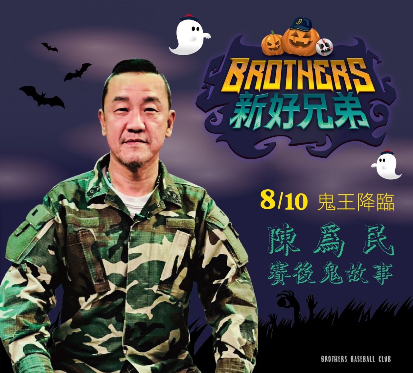 除了賽前場外活動之外,8/10 週六賽後「鬼王」陳為民將來到天母棒球場,和球迷一起大啖鬼故事,聊聊鬼王親身經歷過的詭異事件,分享各種驚悚的體驗,打造屬於中信兄弟球迷獨有的「天母之夜」!