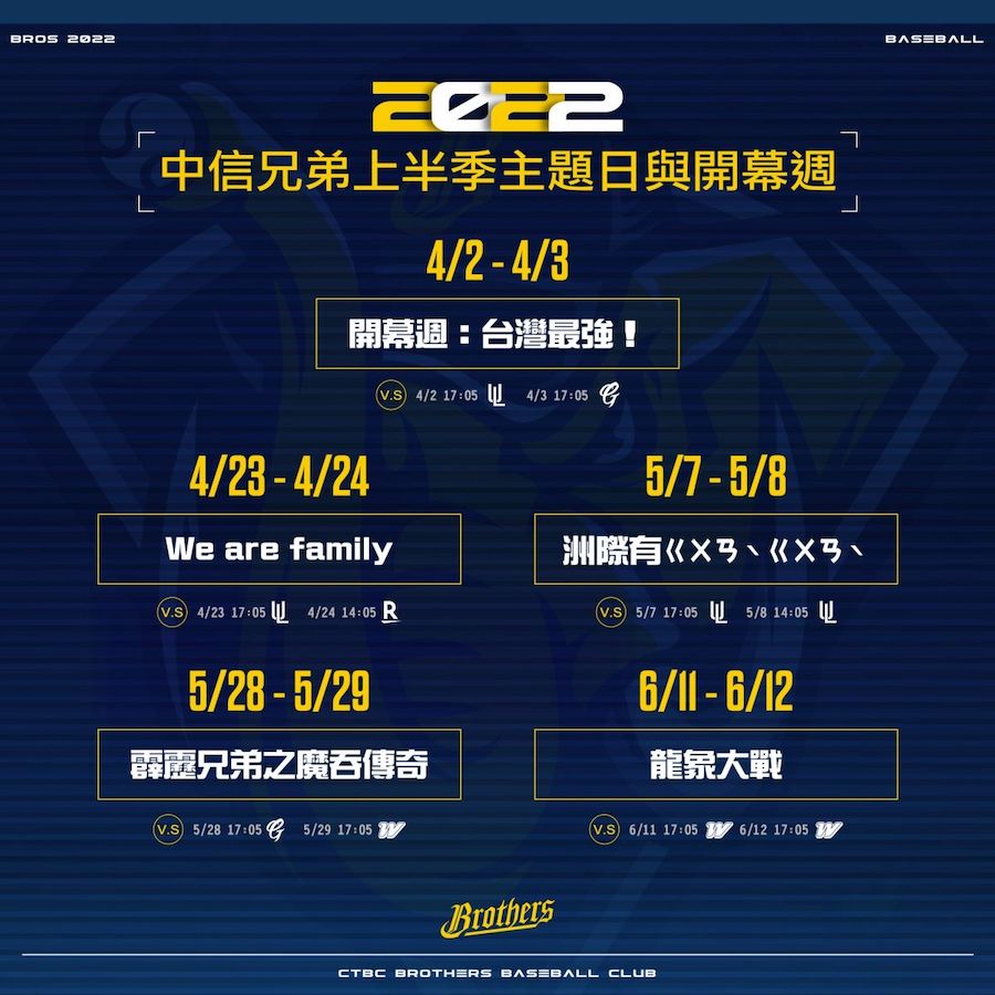 若想知道更詳細的主題日活動內容請看:2022 中信兄弟主題日 (上半季&下半季)