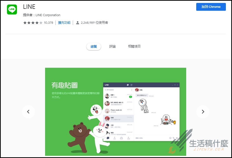 藉由以下連結前往Google chrome線上應用程式商店安裝LINE網頁版外掛套件