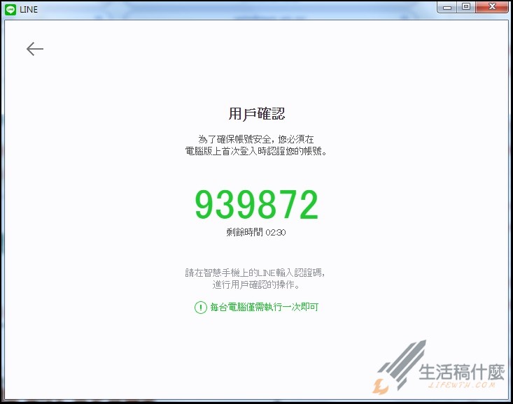 當輸入帳號密碼之後,會需要進行與LINE手機版的同步驗證,以確保您是本人在使用。