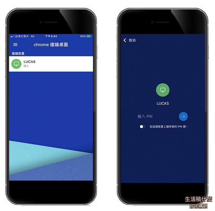 若想要使用手機或平板來連線,您可以到App store與Google play商店下載Chrome遠端桌面的APP。