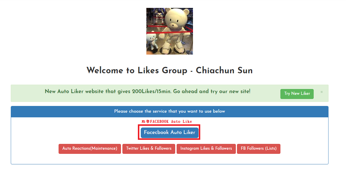 步驟五:登入系統頁面之後,點擊《 FACEBOOK AUTO LIKE》。