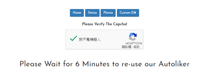 備註:系統每次發送完讚約要等待15分鐘左右才可以進行下一次操作,如看到下圖代表還需要等待六分鐘才能進行下一次操作。