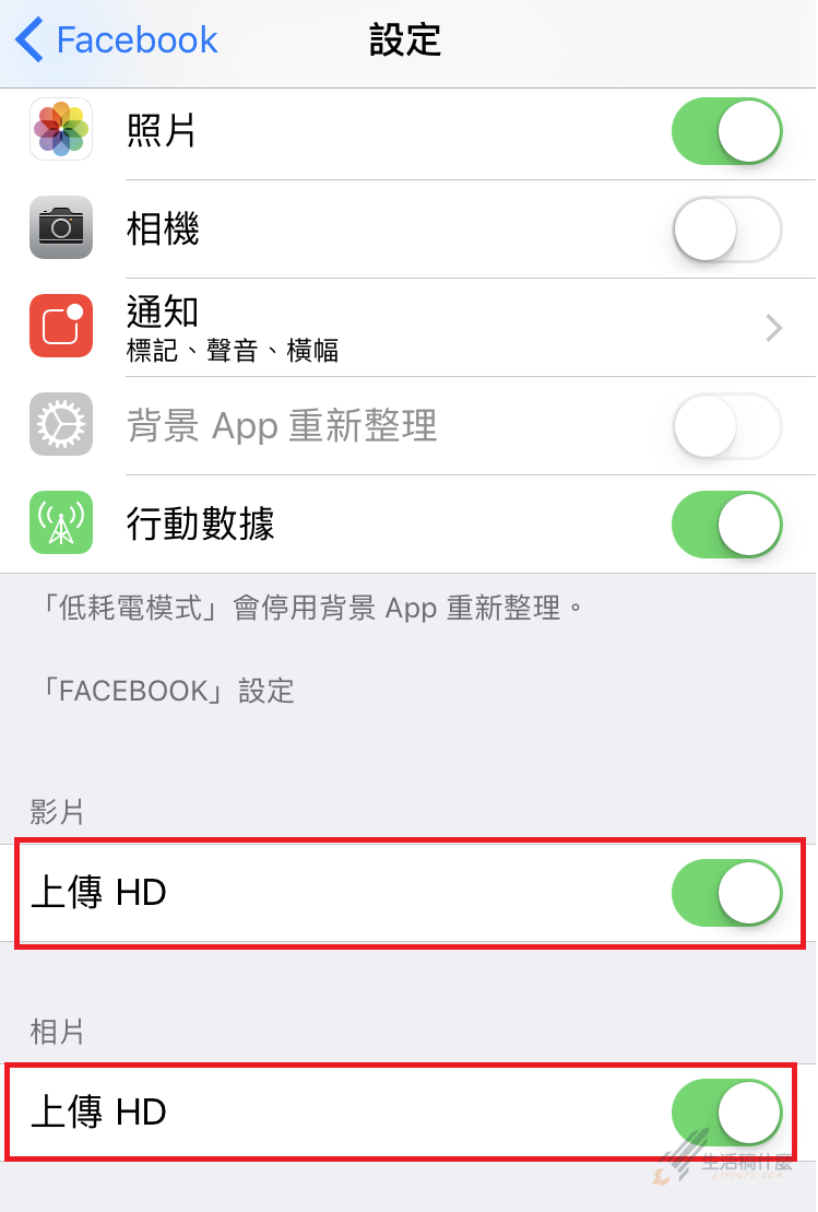4.將【影片上傳HD】與【照片上傳HD】的功能開啟。