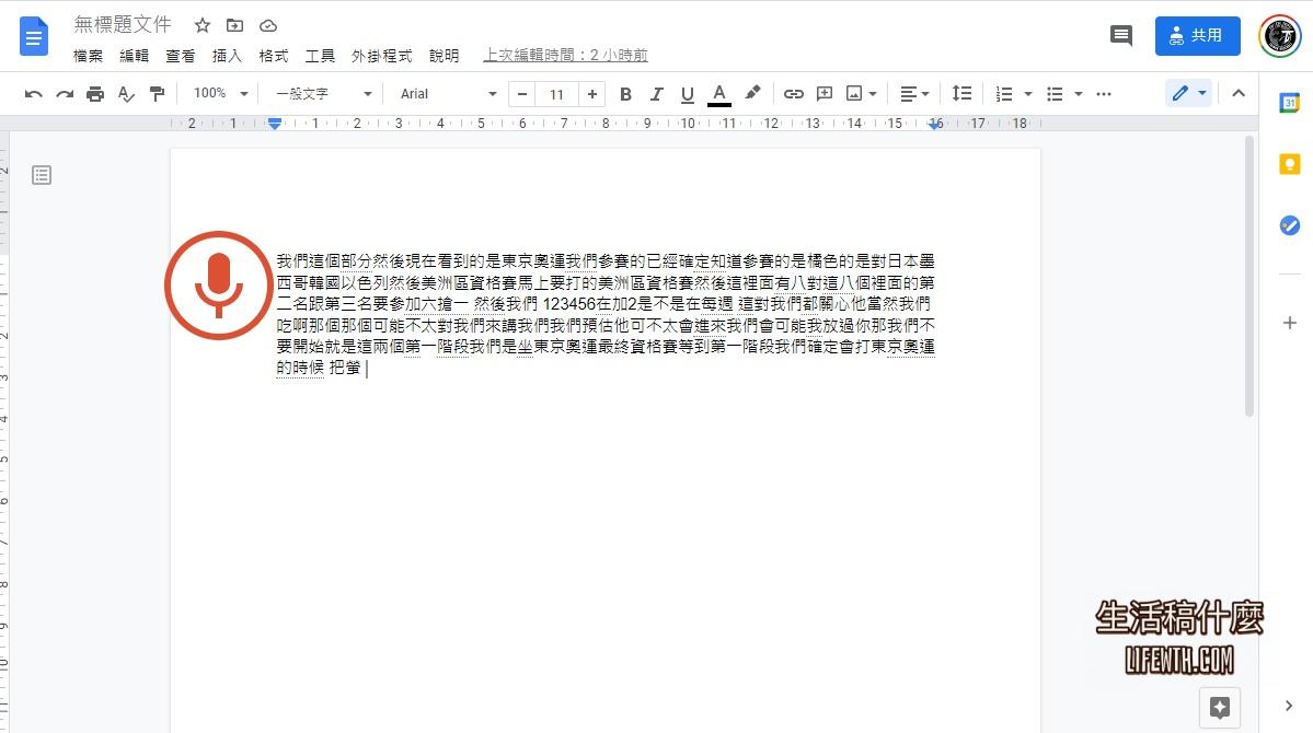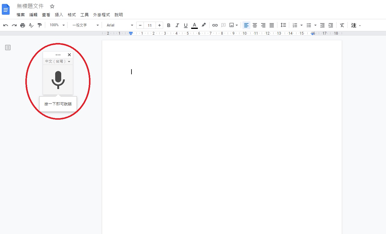 3.4 若右方會出現麥克風圖示,表示有成功開啟Google文件的語音輸入功能。