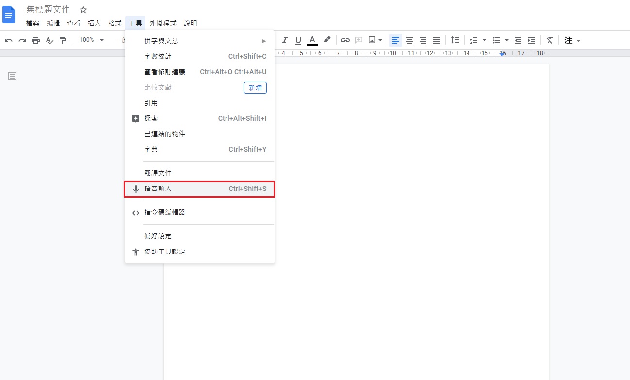 3.3 點擊上方選單中的「工具」,接下來選擇「語音輸入」。