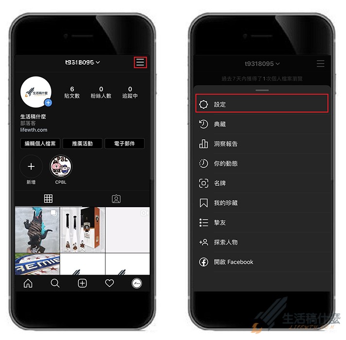 如果您不想要被別人偷看,該如何關閉隱藏「上線時間」的功能呢?首先在IG首頁處點擊「≡」 → 接著點擊「設定」。