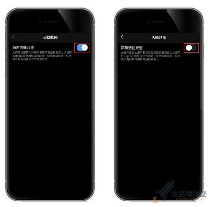 最後只要將「顯示活動狀態」關閉,就可以讓您最後的上線時間消失了,未來任何人都只能看到您最後回覆訊息的時間,不過您也同樣會無法看到其它人的IG的上線時間。