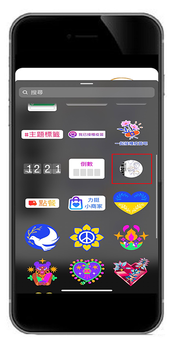 我們先選擇一張照片設成IG限時動態的底圖,接著點擊「方形笑臉貼紙」圖示。