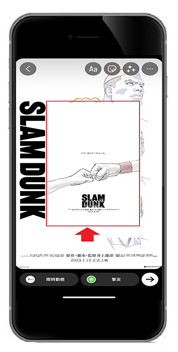 當您選擇好要加入的照片後,在IG限動的編輯頁面上就會出現剛剛選擇的照片。