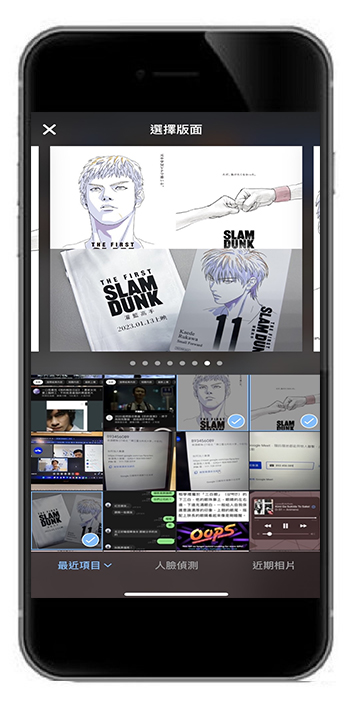 找到插入照片的按鈕,點擊後就可以加入手機相簿內的照片。