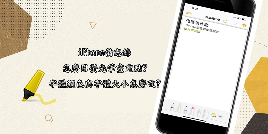 在iPhone備忘錄中雖然有內建可以塗鴉的繪圖工具,但備忘錄裡的畫圖功能與文字是分開無法重疊,因此我們無法直接在備忘錄的文字上用螢光筆畫重點或改變字體大小及字體顏色。
