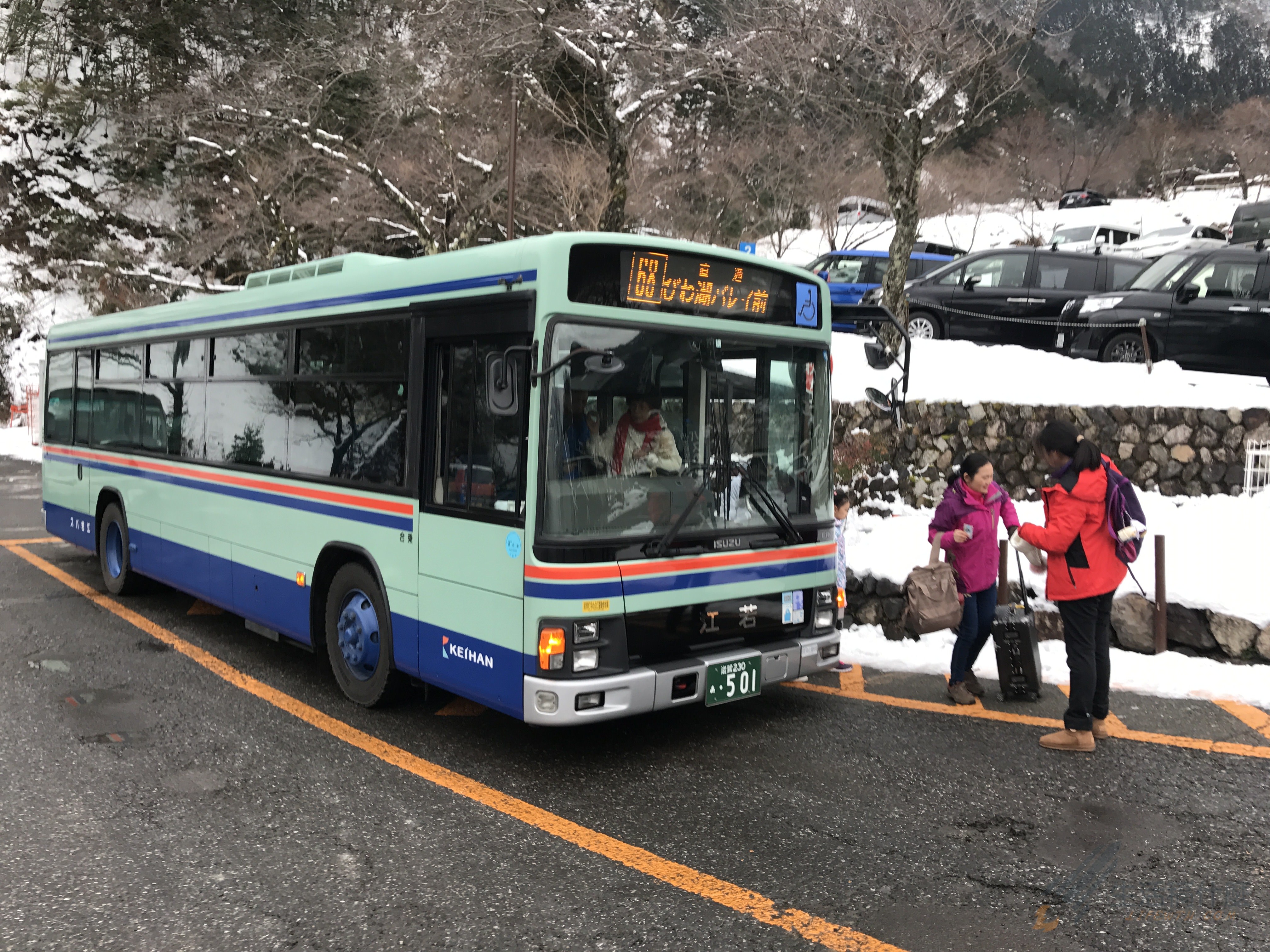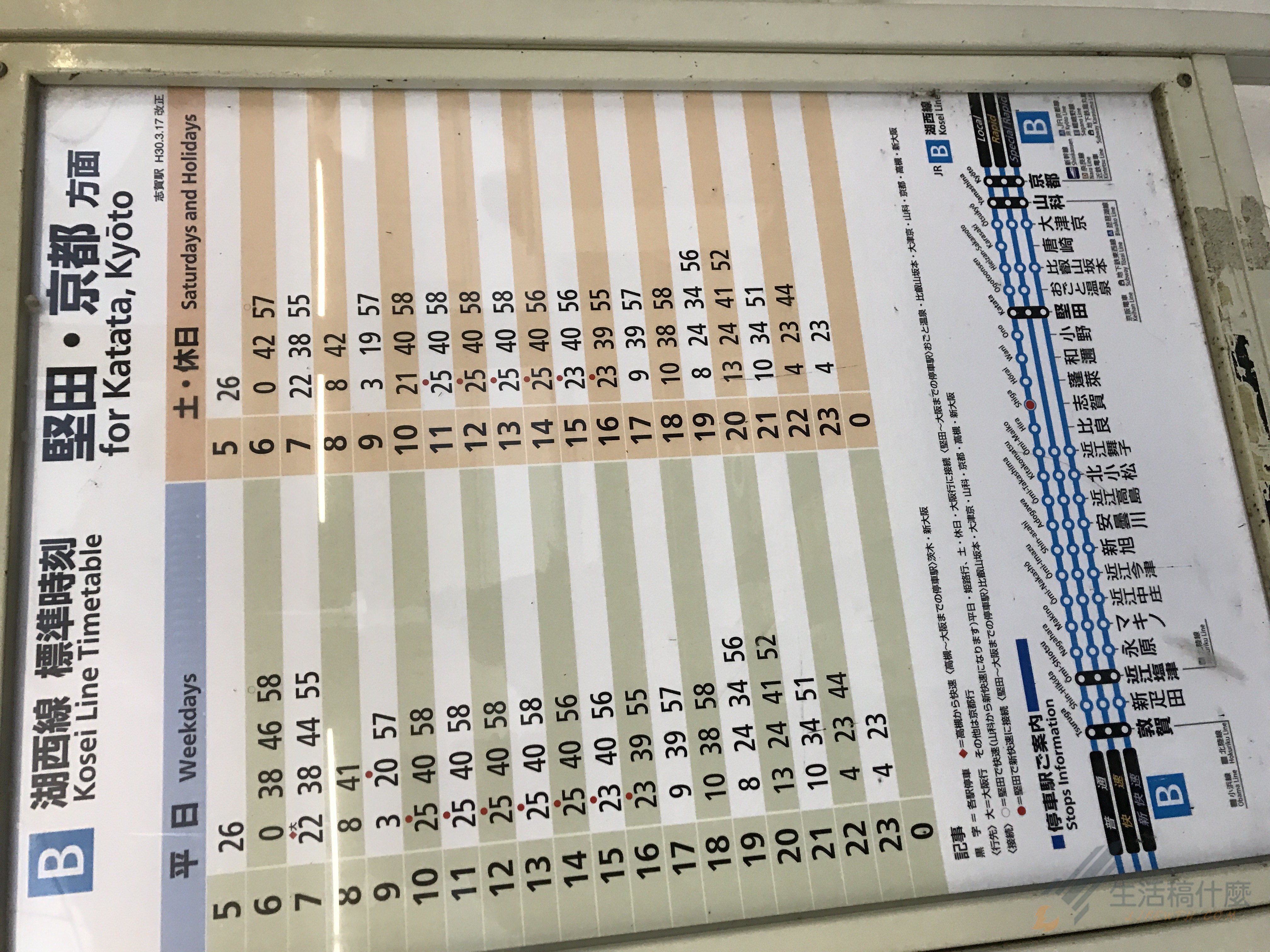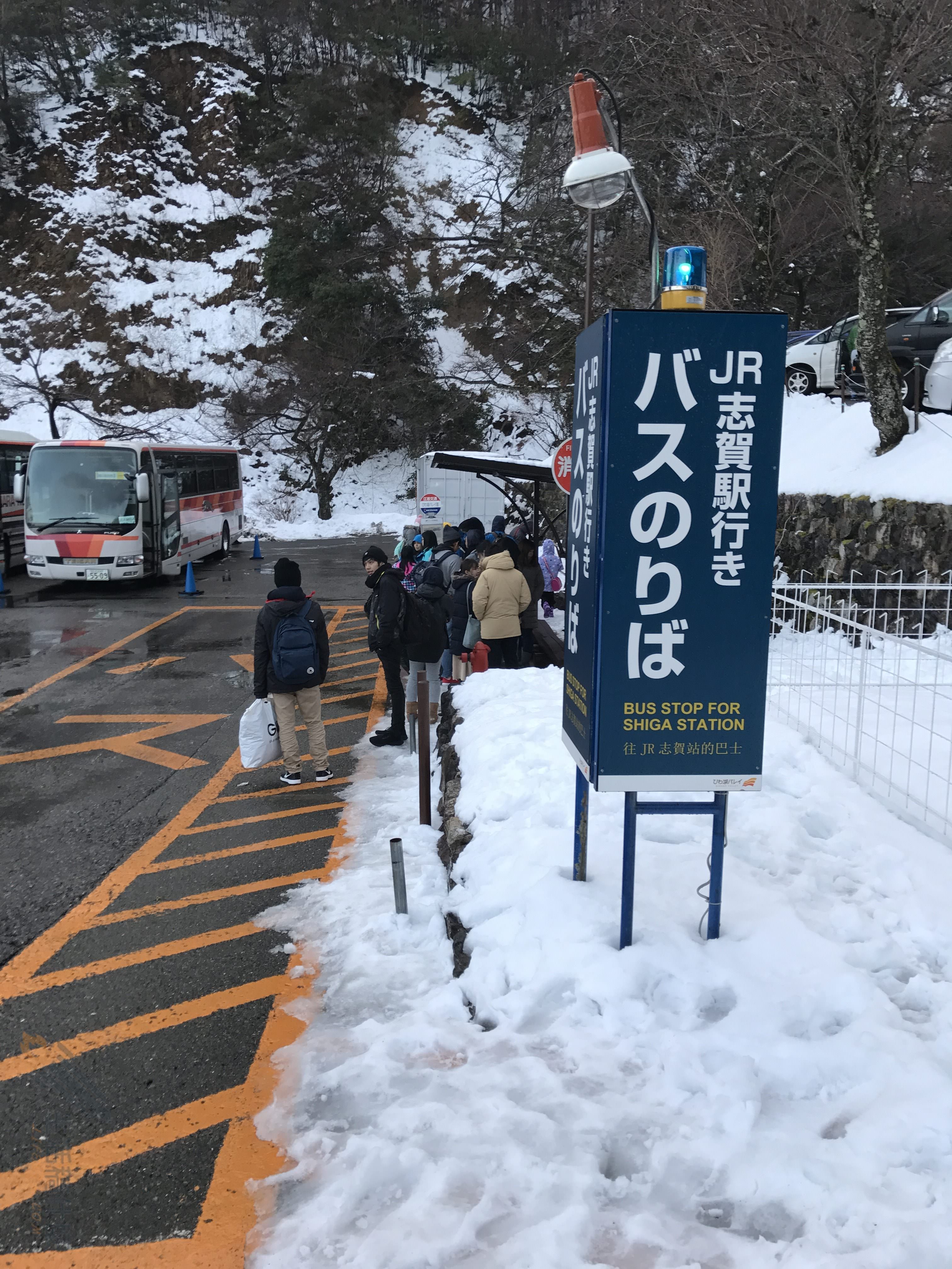 自行前往主要是搭由京都到志賀車站的電車,下圖為志賀車站時刻表。