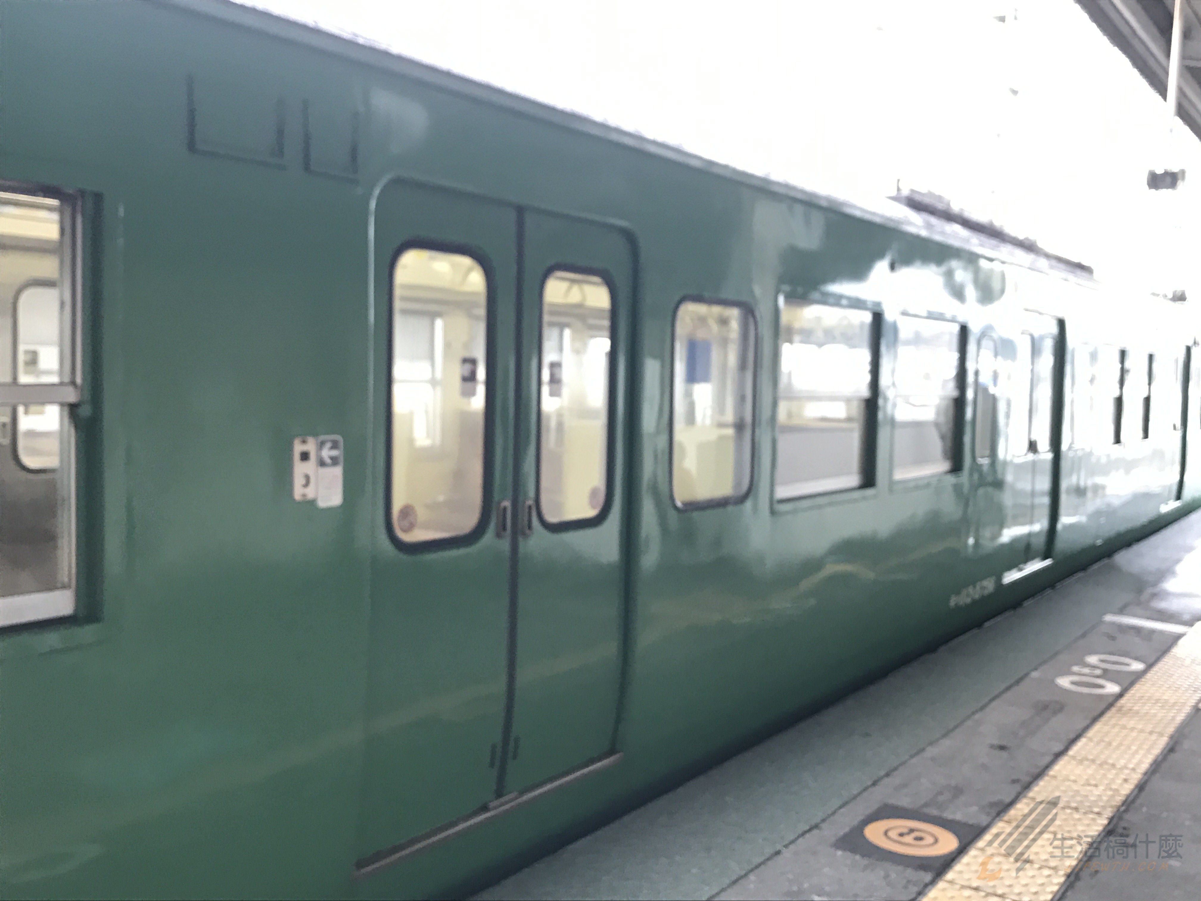 下圖為到志賀車站的電車,整台車都是綠色的相當好認,完全不怕會坐錯車。