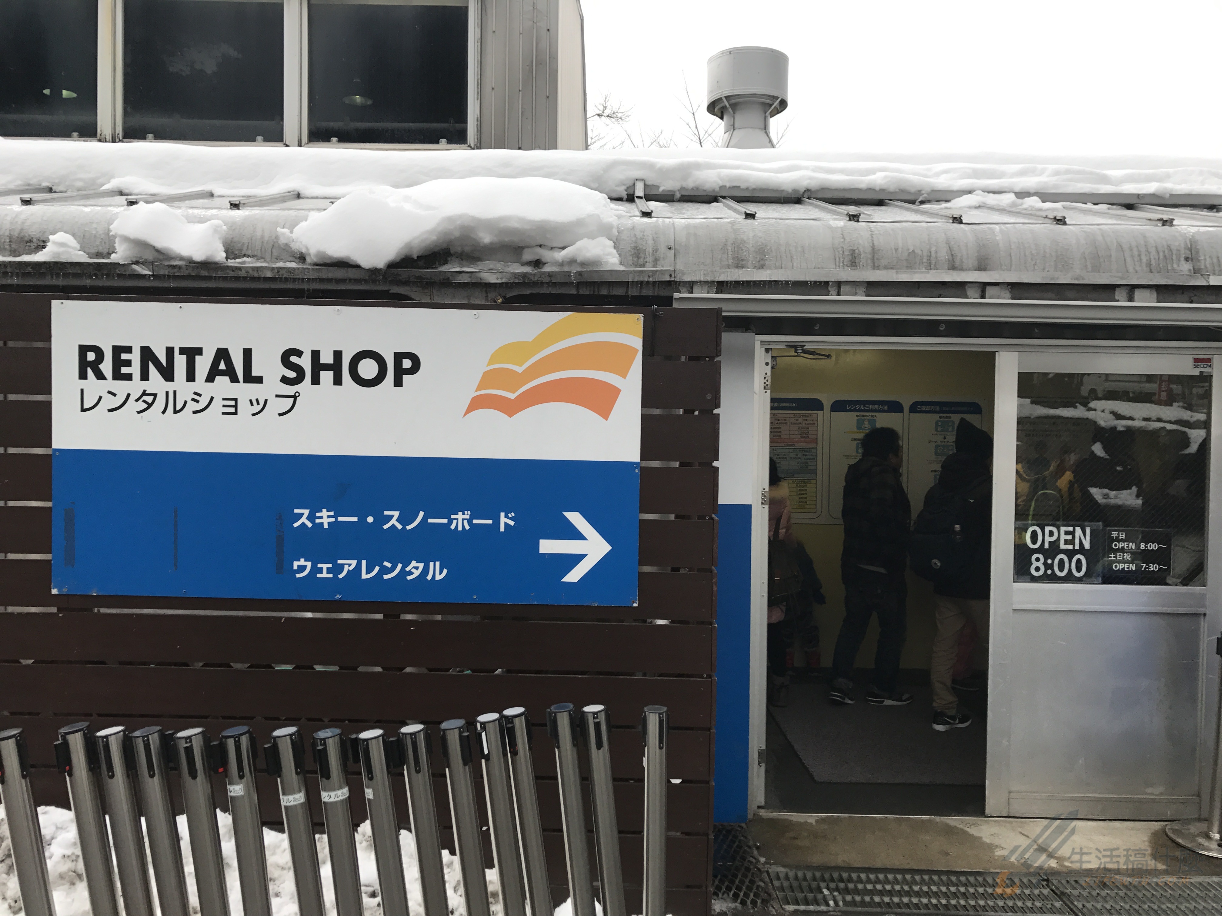 進遊客中心後首先先不要急著買票上山,需要先去右邊那棟『RENTAL SHOP』裝備租借處先租借雪具或預約教練課程,如您有自備雪具的話就可以直接買纜車票上山瞜。