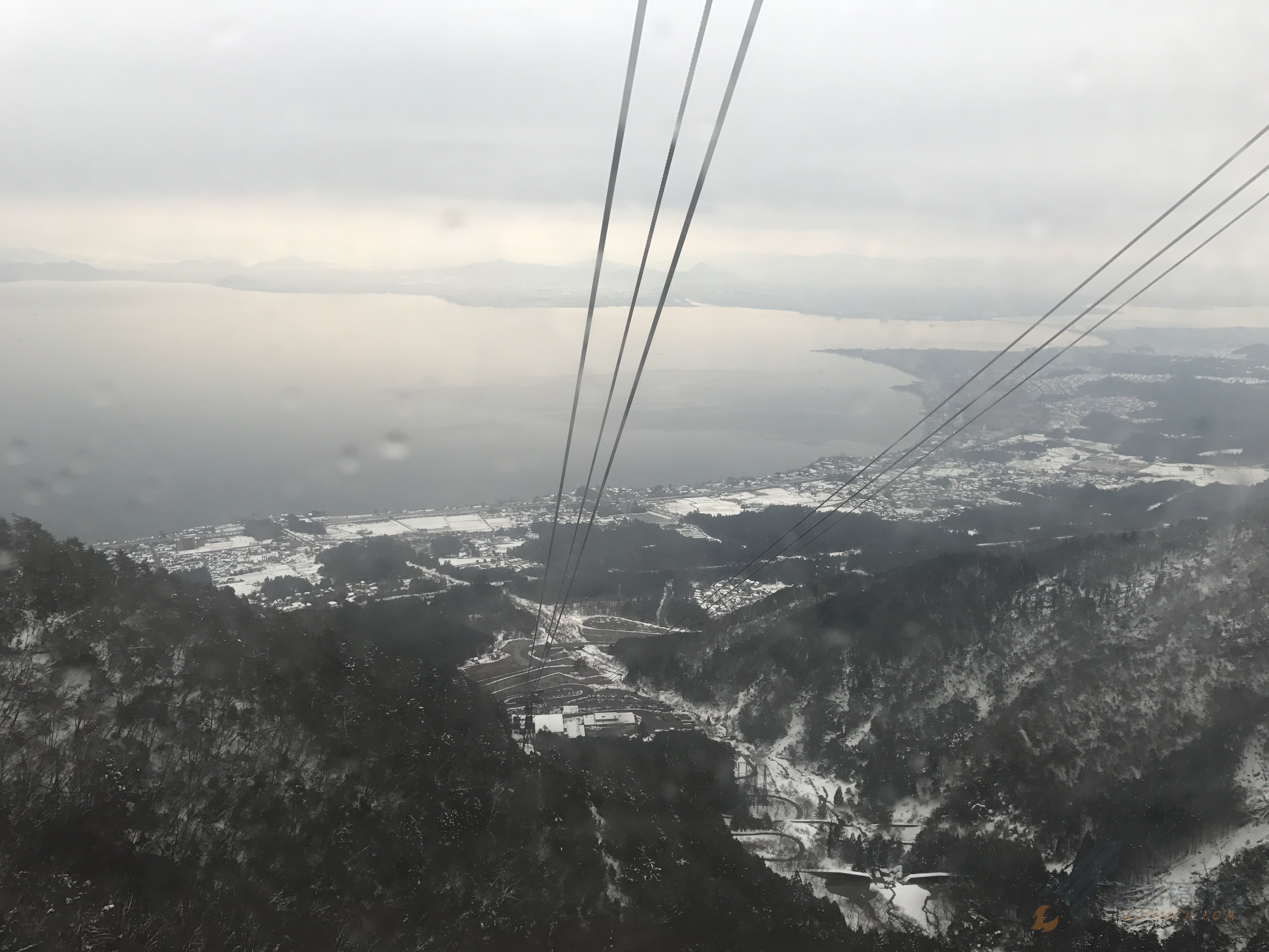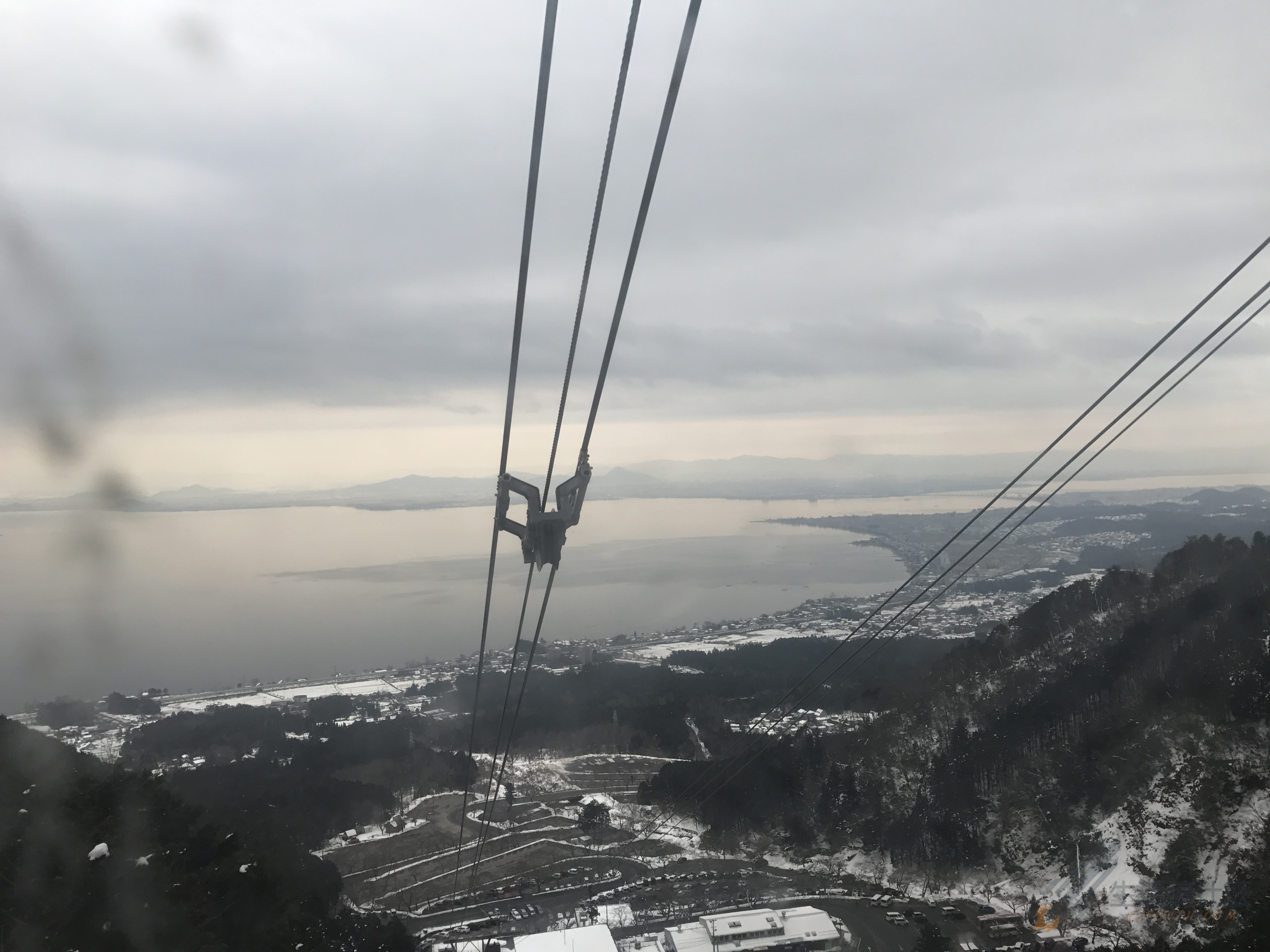 纜車到山頂大概需要5~6分鐘的時間,這時候就可以休息一下來欣賞由纜車往下看琵琶湖的景色。