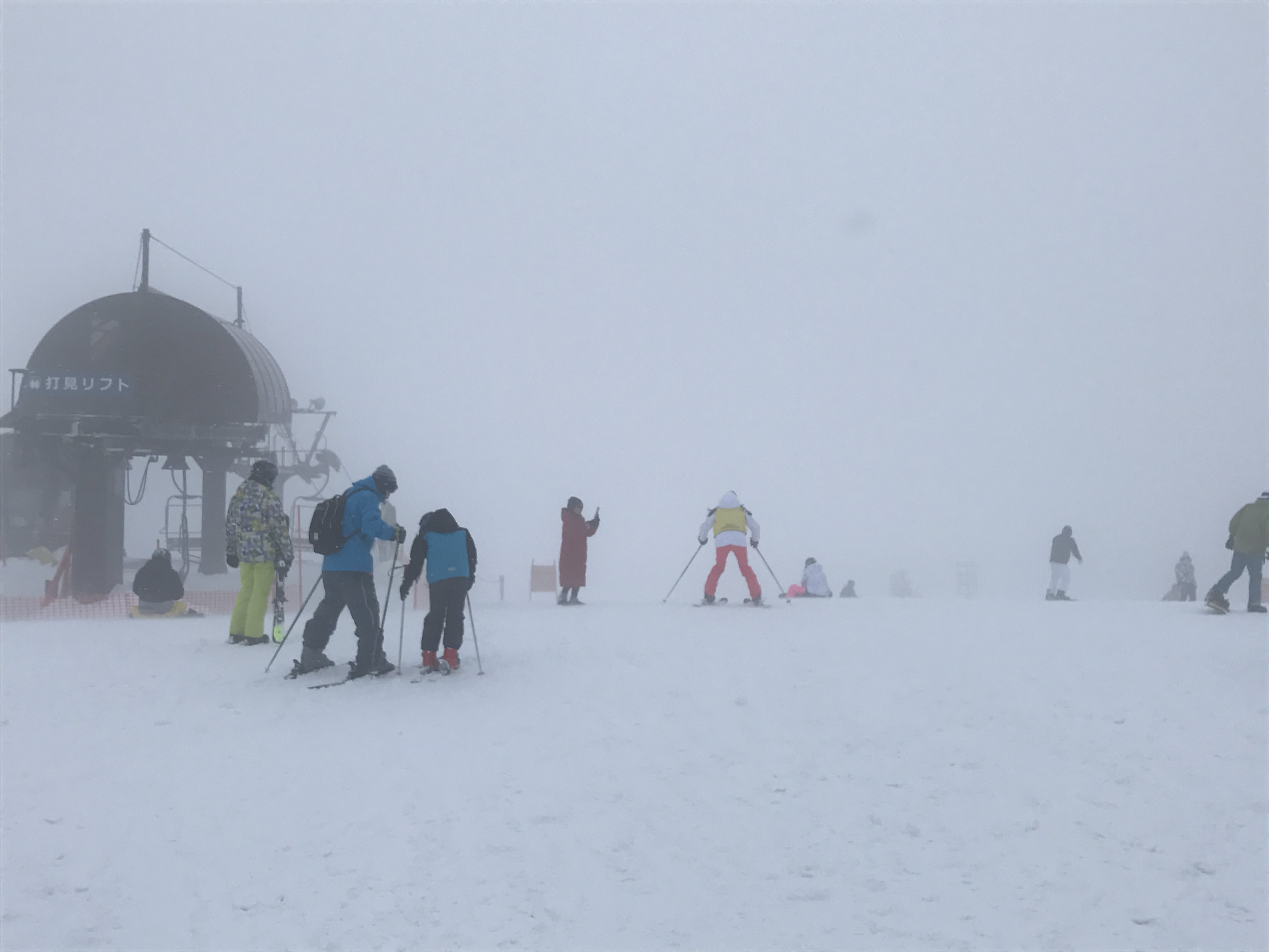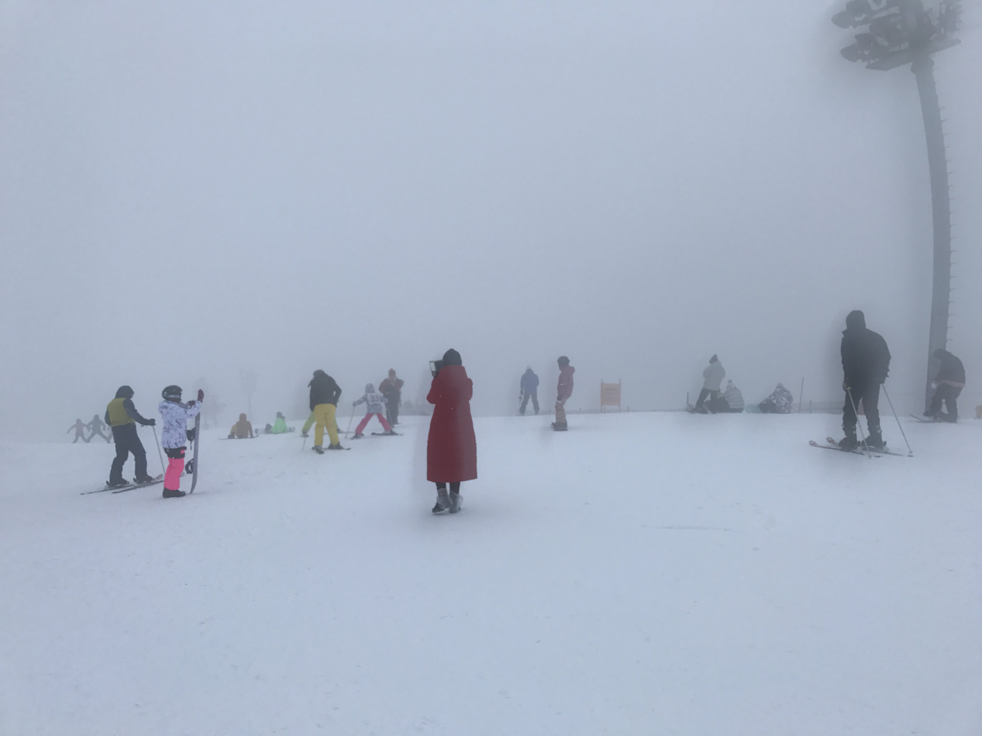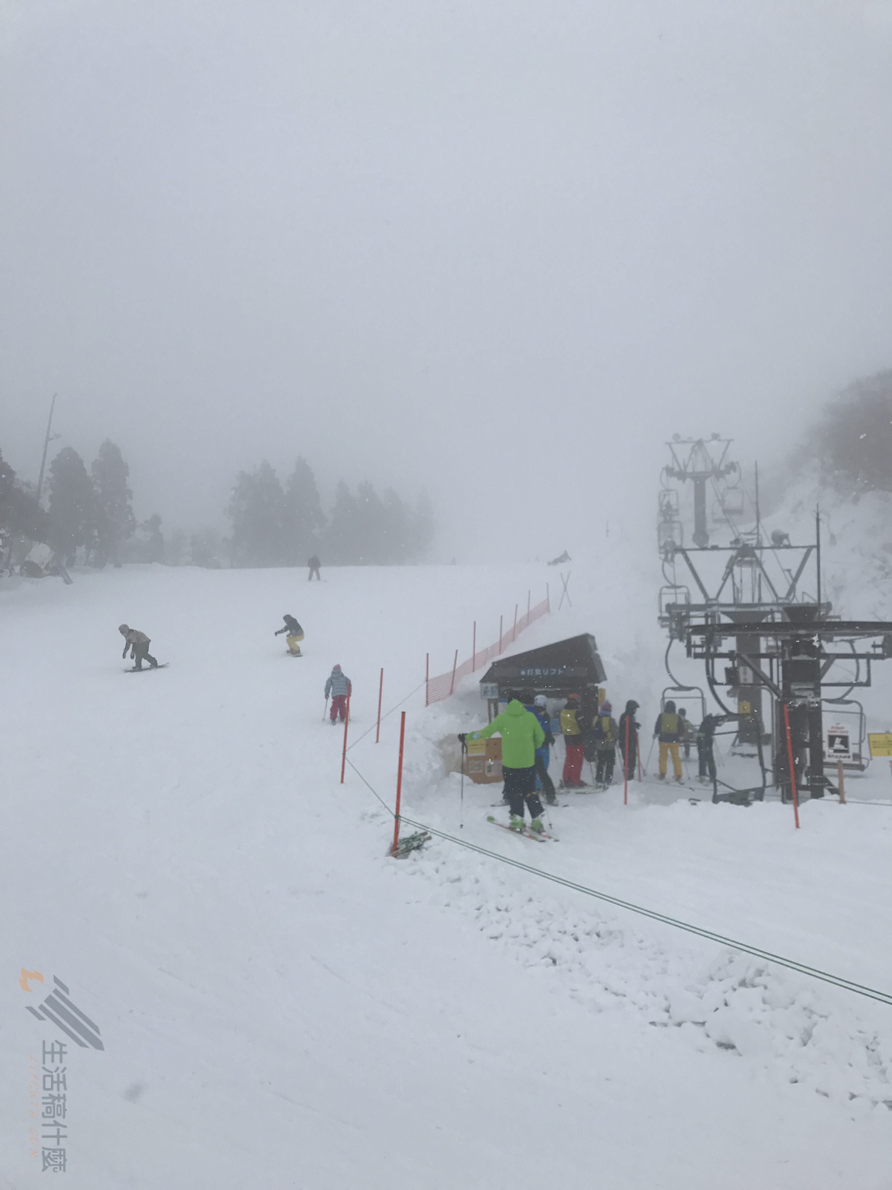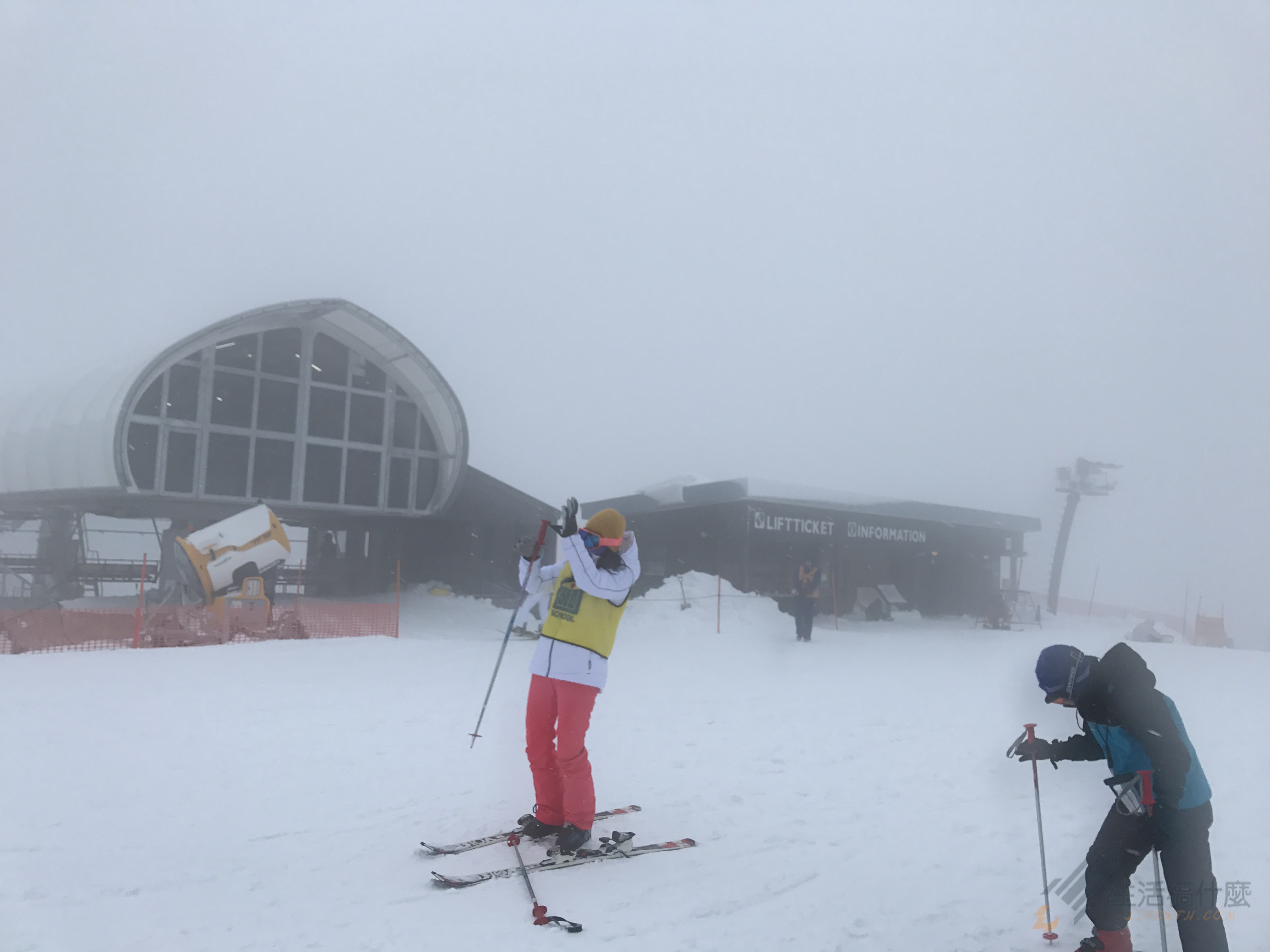 再來就是準備要開始滑雪,當天由於雪下得非常大能見度真的很低,不過依然沒有減少大家滑雪的興致。