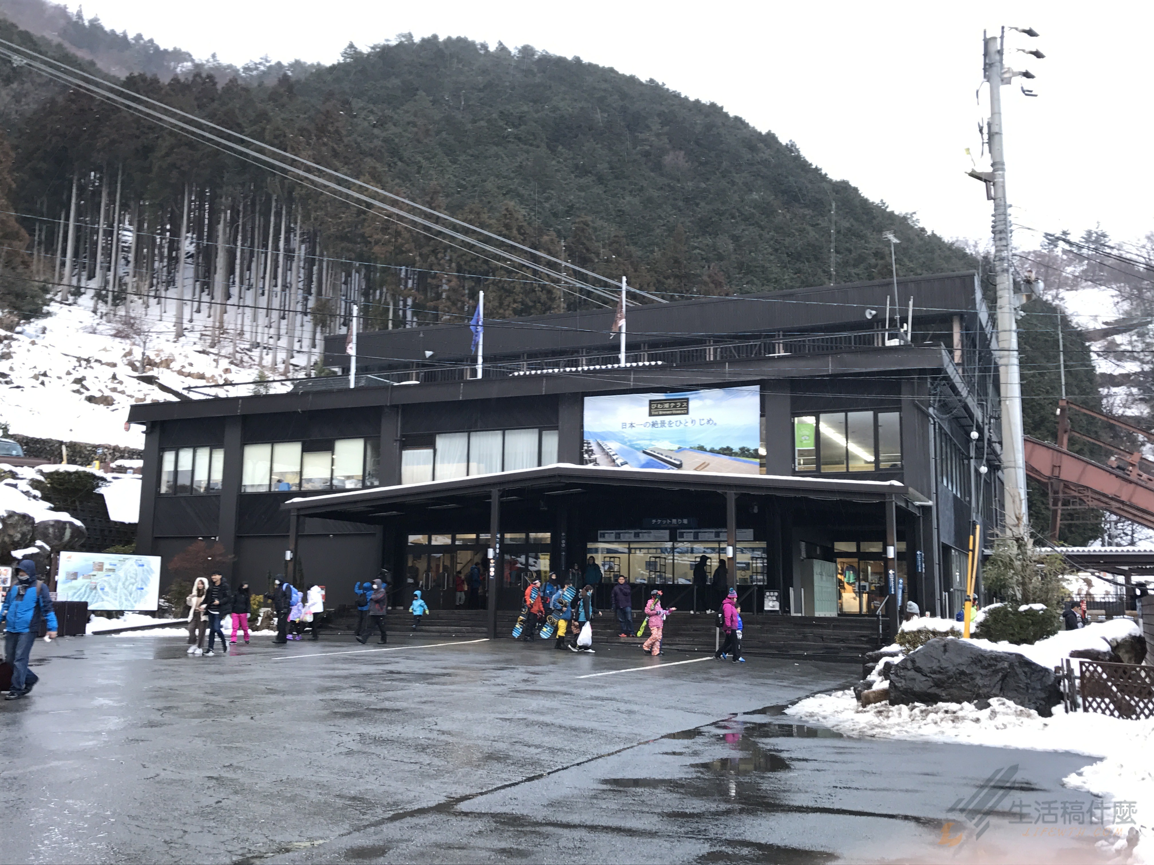 巴士到站後會停在滑雪場的停車場,下車後走到對面即為滑雪場的服務中心。