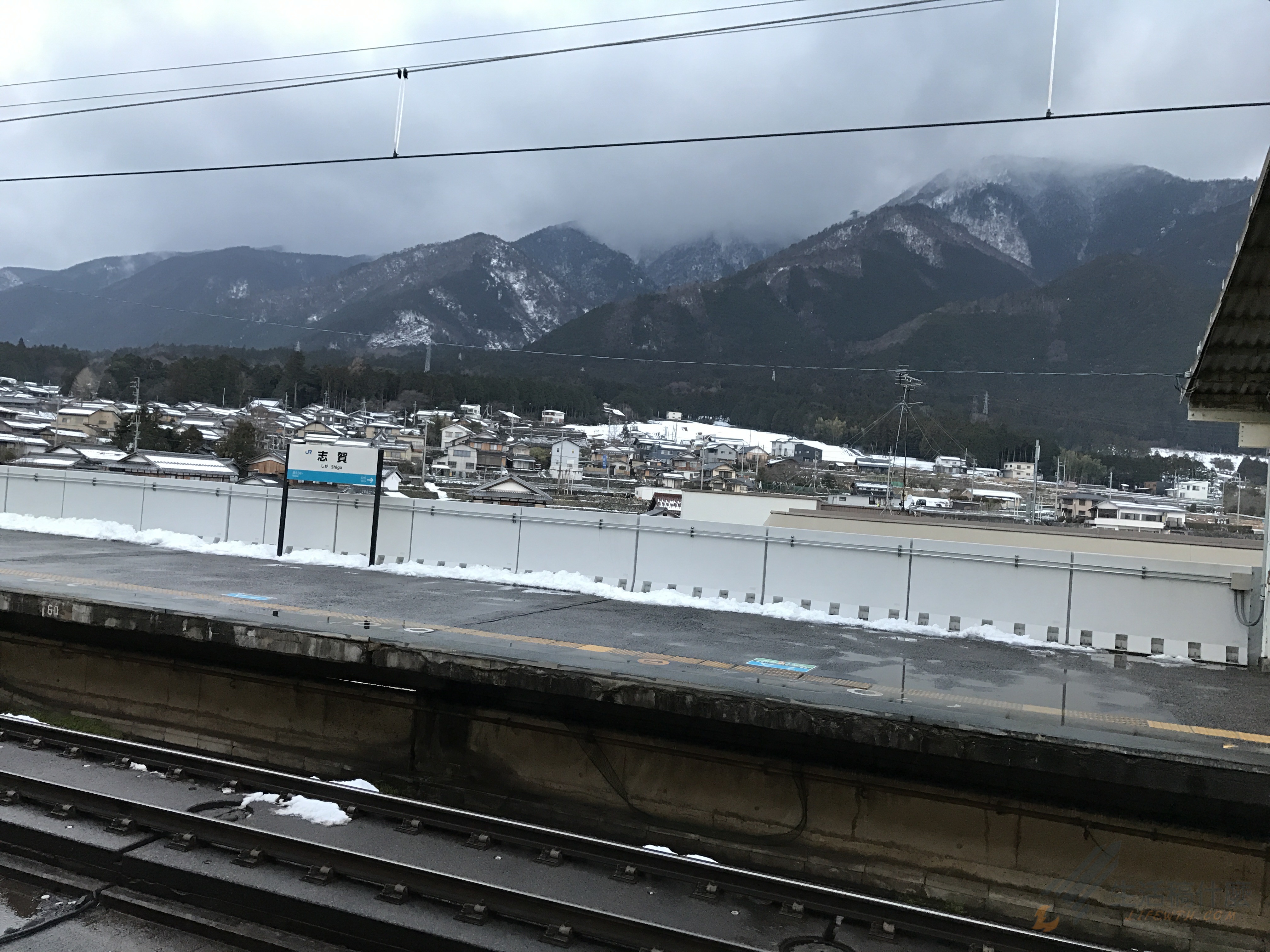 到達志賀車站,沿路上都有積雪感覺是才剛下過雪不久,由車站往山上看去整個山頂都被雲所覆蓋相當的漂亮,小編感覺等等就是在雲中滑雪。