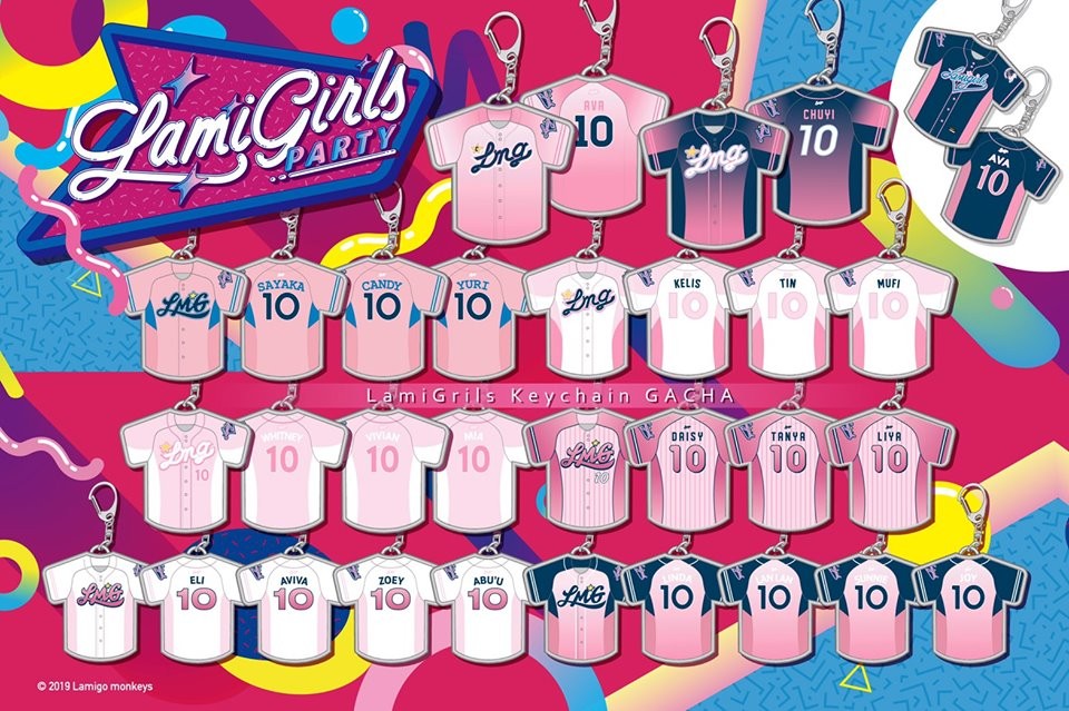 辣蜜趴怎能少了扭蛋?22位女孩巫苡萱、沐妍、慕霏、慧慧、陸筱晴、曲羿、倪暄、琳妲、羚小鹿、張庭、牙璽喬、彩香、阿布舞、卉妮、巧柔、菲菲、籃靖玟、李亞璇、凱莉絲、孟潔、YURI、若潼各自的球衣鑰匙圈含在扭蛋內推出,
