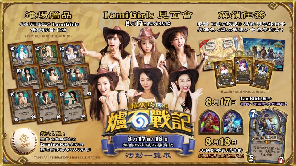 Lamigo桃猿隊與LamiGirls將化身《爐石戰記》中的卡牌和角色,迎接本次「辣蜜趴之爐石尋寶記」活動,LamiGirls特別拍攝了一支前導預告,影片中LamiGirls化身探險隊成員,在豔陽跟黃沙中尋找傳說中的寶藏,一個神秘的魔法盒子。 驚人寶藏寶藏將於8月17日(六)、8月18日(日)「辣蜜趴之爐石尋寶記」中揭曉!