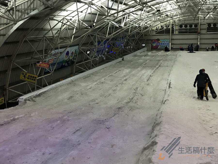 雪場並沒有纜車或魔毯輸送,因此每次從上面滑下來後,就要從旁邊這個走道徒步走上去,雖然坡道不陡但穿著雪鞋與抱著雪板多走幾趟真的還消耗體力的,希望小叮噹滑雪場能趕快加裝魔毯輸送設備。