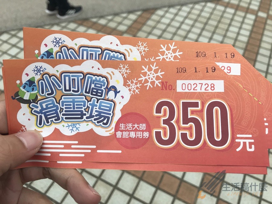 這張滑雪專用卷請務必保管好,因為到小叮噹滑雪場後可以直接來折抵滑雪費用,記得千萬不要直接略過生活大師會館櫃台然後走到滑雪場。
