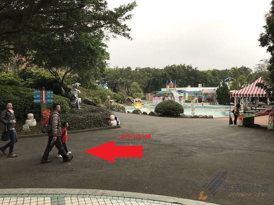 地上的指標會指引您走到生活會館的側門口,走出自動門後會看到一個噴水池,這時請馬上毫不猶豫的左轉。